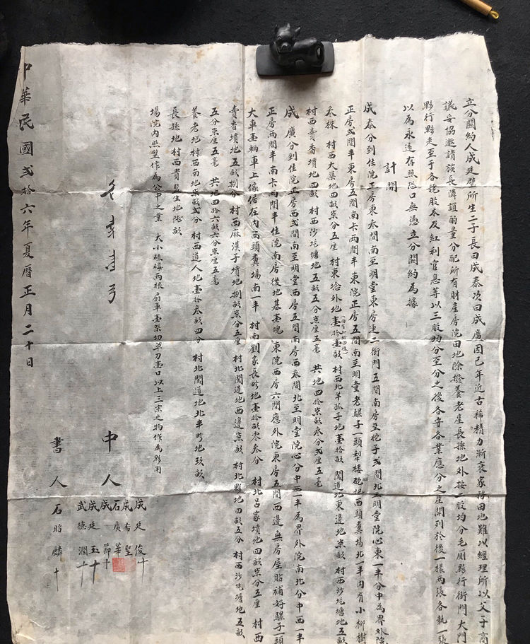 光緒34年(1908年)至今已經(jīng)過去111年了。一份百年前的分炊契約,寫出了一個家庭的喜怒哀樂,寫出了一個家庭的滄桑變遷,寫出了前人的恩威并重、愛憎與獎懲分明,也寫出了長者的期盼和無奈。